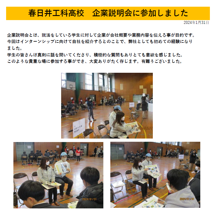 愛知県立春日井工科高等学校 企業別説明会に参加
