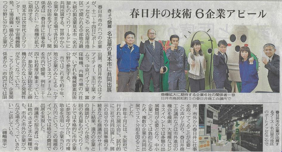 中日新聞朝刊「春日井の技術6企業アピール」に掲載されました。