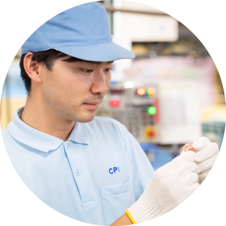 - CPIの“つくる”業務はさまざまで、機械の操作もあれば手作業もあります。それにもかかわらず、現場で活躍している人の多くが未経験からスタートしています。それを可能にしているのが教え役の先輩たち。