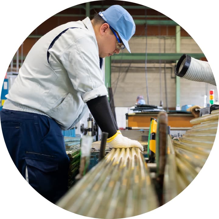 現在は、機械のオペレーション業務に携わり、銅パイプを切断したり、仕上がったベンドを端末加工する機械のメンテナンスや、完成製品の測定などを行っています。わからないところは先輩に質問しながら働ける環境です。機械好きを生かしながら、日常生活に関わる部品を扱えるのが楽しく、やりがいにつながっています。休憩時間には趣味の話題で盛り上がり、キャンプやツーリング、飲み会などに参加しました。聞いていたとおり、人間関係が良く働きやすい会社です。
