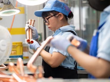 部品づくりを担っています。 - 一般のご家庭の給湯器や浴室暖房器などのガス機器に使われる製品を製造しています。銅管の切断から曲げ、端末成形をして、加工したり、穴を開けたり、ロウ付けをしたり、銅管と銅管を接合したりなどの工程があり、最終の検査を行います。